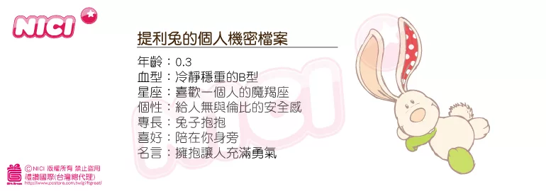 商品推薦:25CM提利兔坐姿玩偶(附精裝背卡)